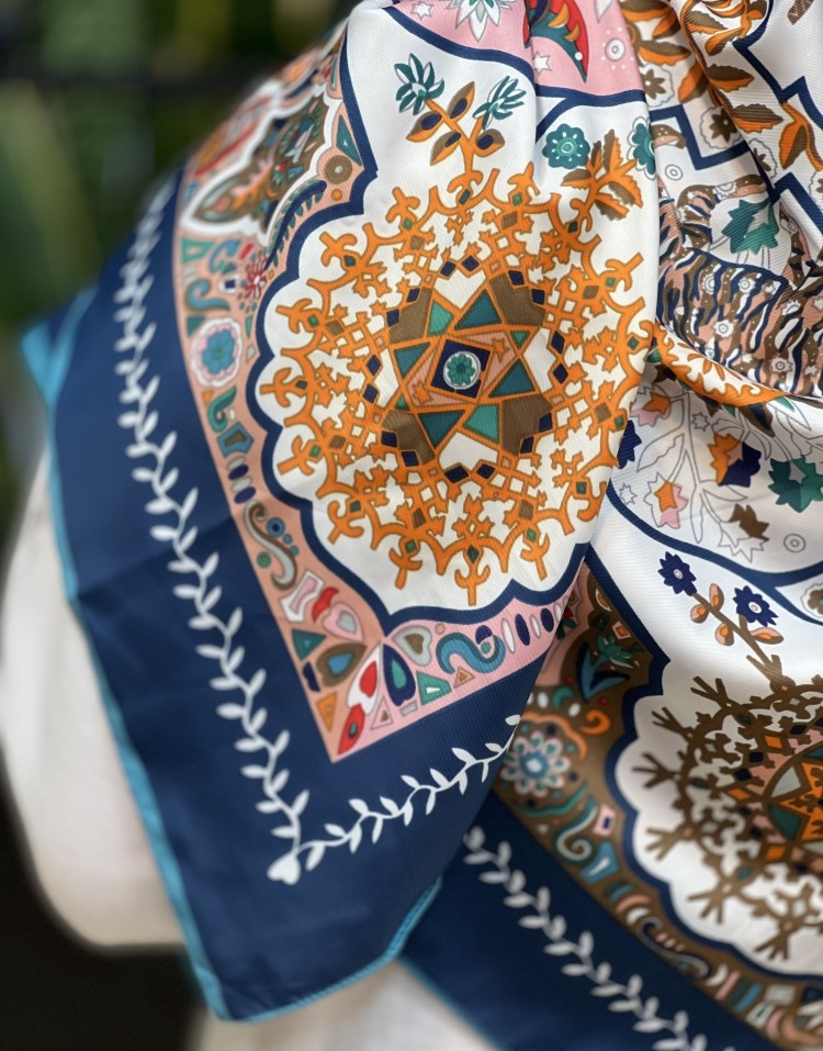 مینی اسکارف سرمه ای کرم طرحدارcode:3119