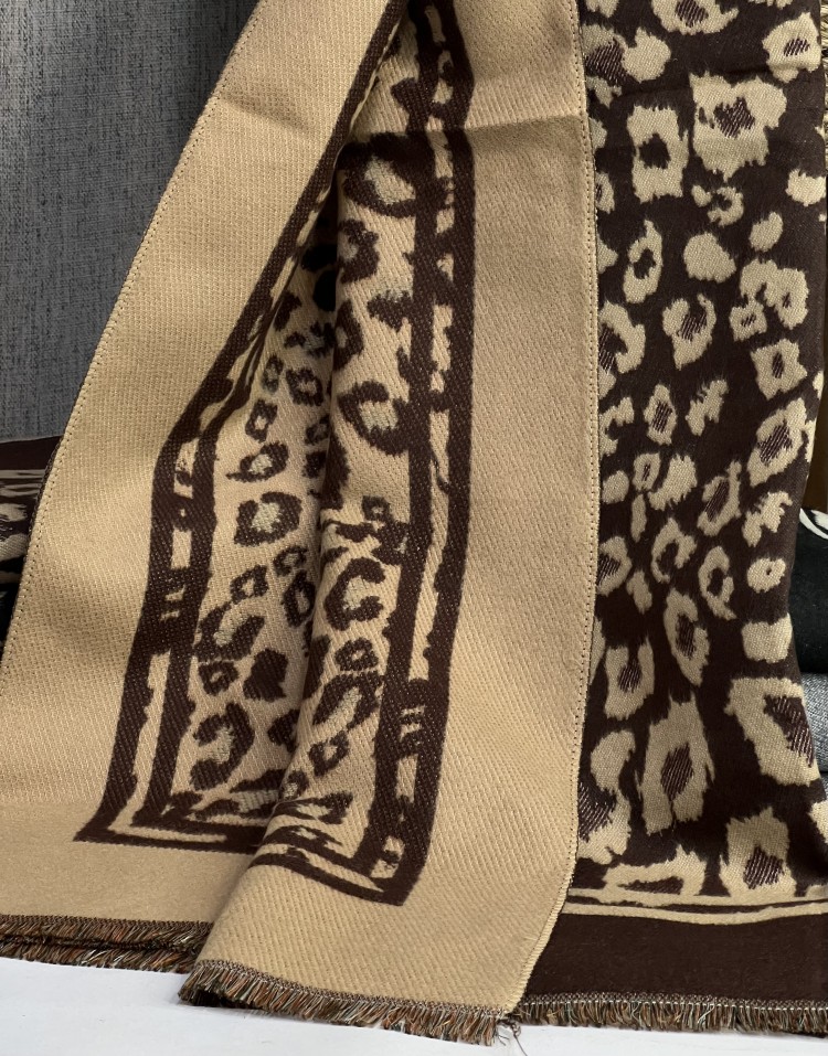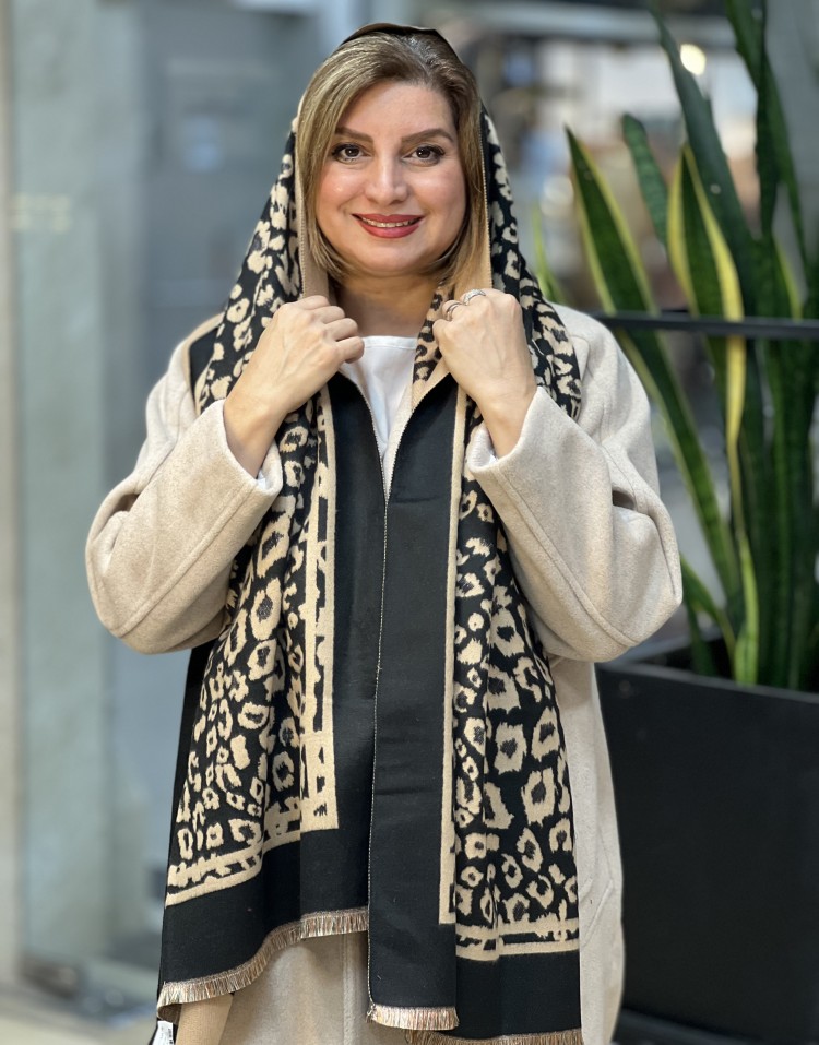 شال کشمیر ریشه پرزی پلنگی دورو وارداتی کیفیت A+++ایستایی روی سر عالی هم شال هم شالگردن مناسب فصل پاییز و زمستان
