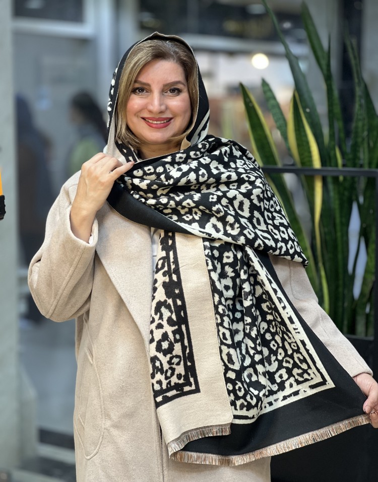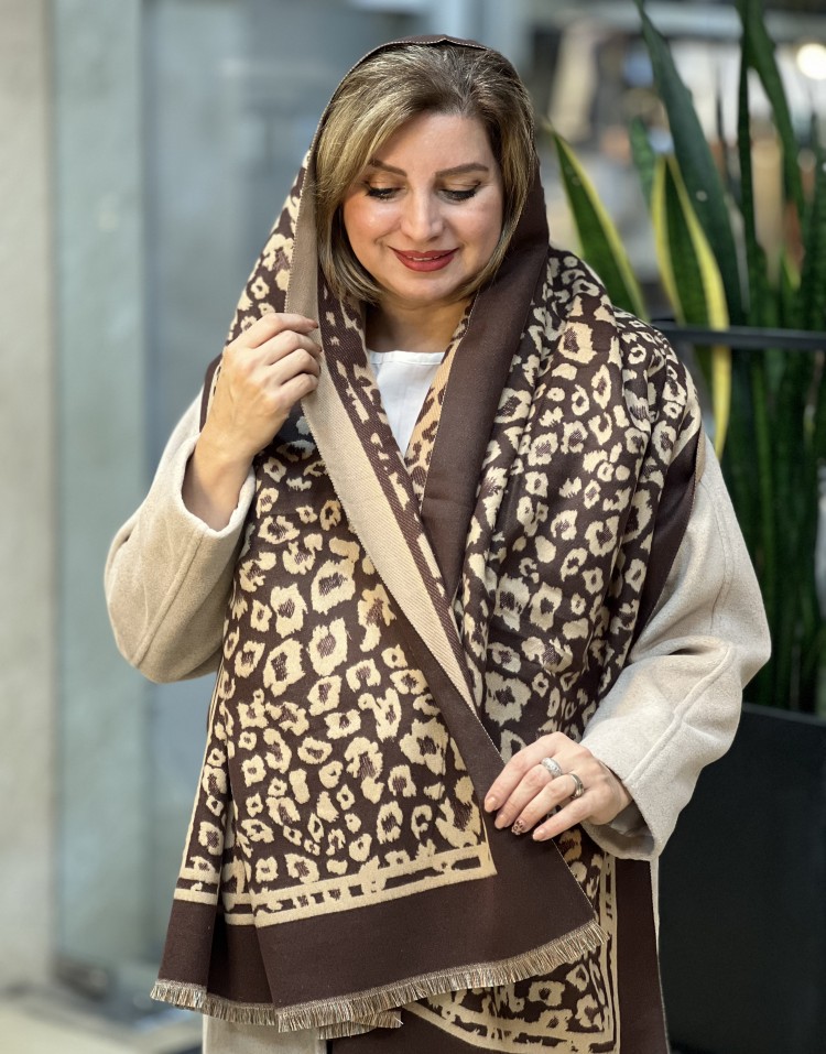 شال کشمیر ریشه پرزی پلنگی دورو وارداتی code:2917