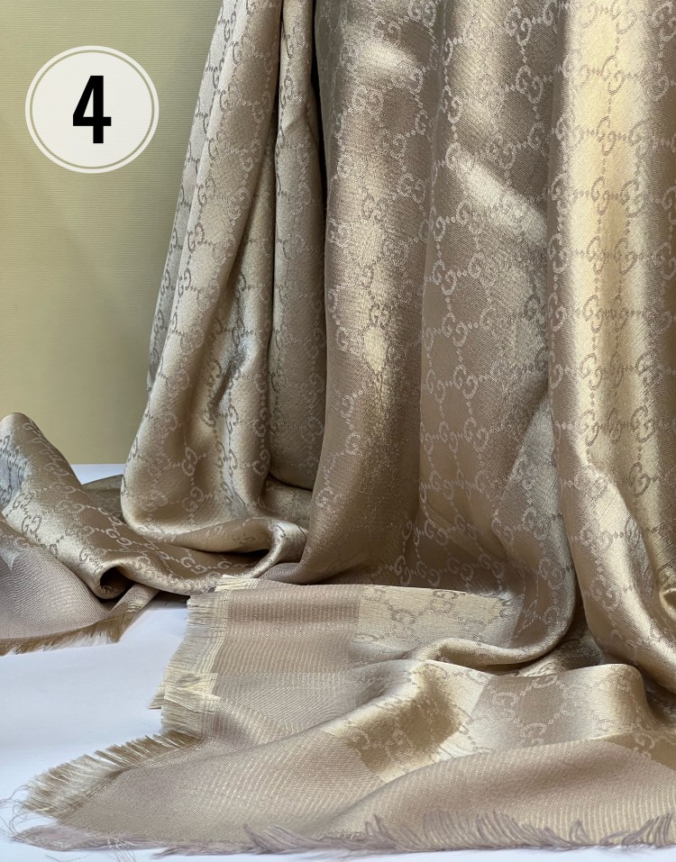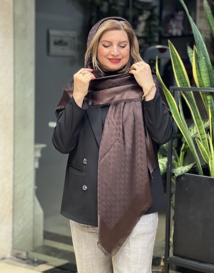 روسری مارک گوچی ژاکارد لمه دار این روسری قابل استفاده از هر دورو است کیفیت درجه یک ایستایی روی سر عالی