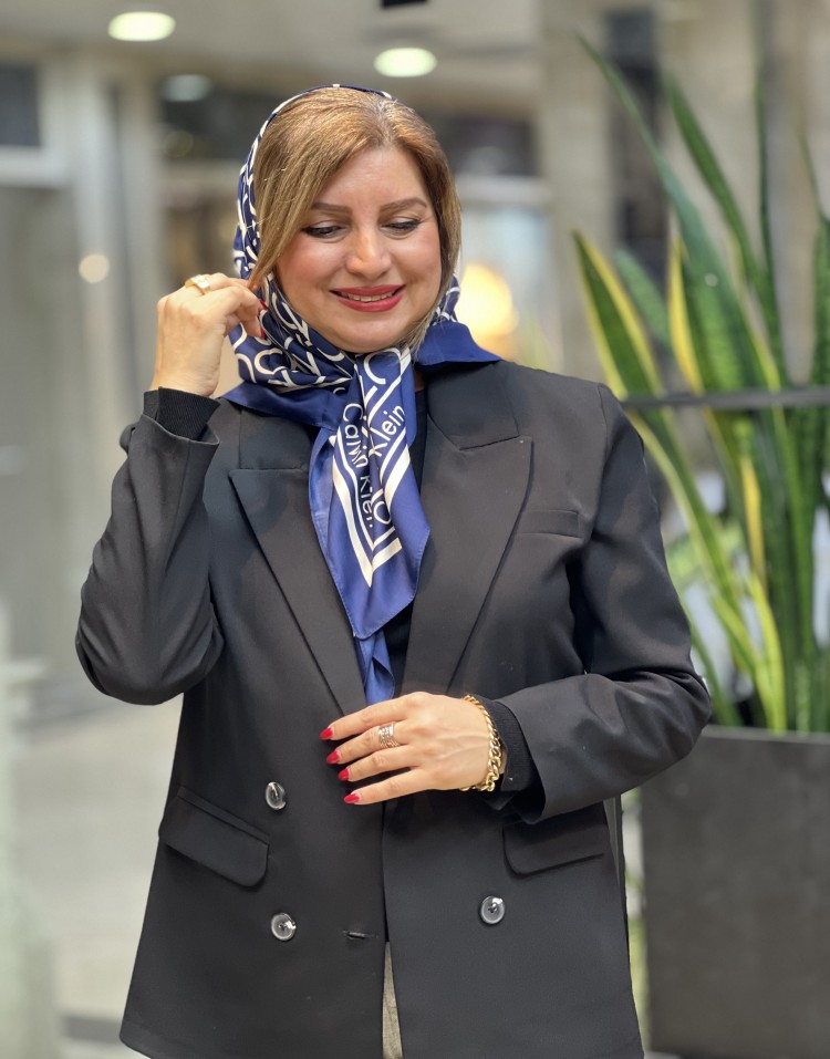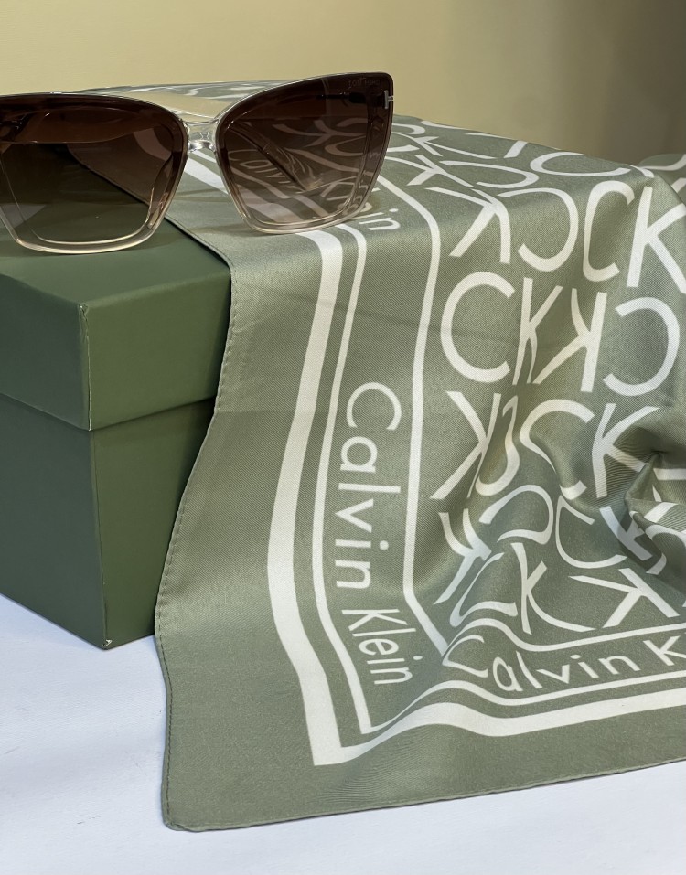 روسری ساتن نخ مارک CK کیفیت +++A ایستایی روی سر عالی سر نیست