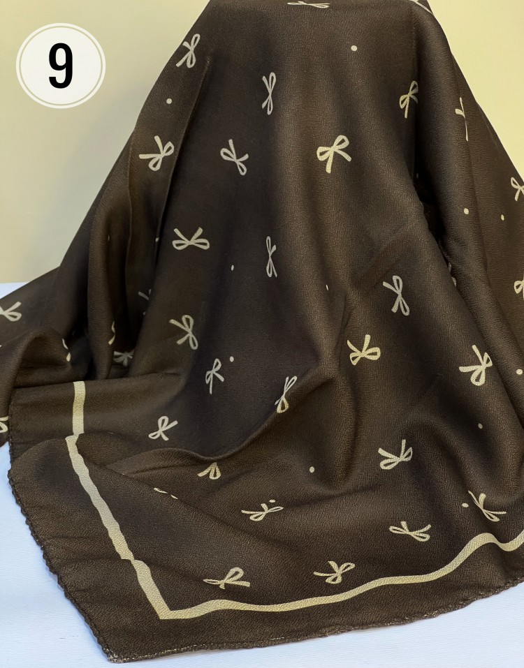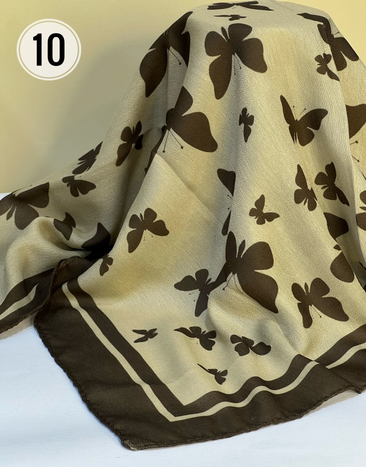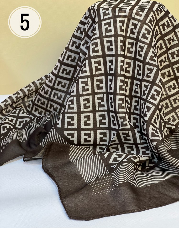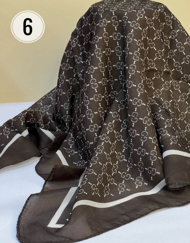 مینی اسکارف طرحدار قهوه ایی کرم کیفیت +++Aایستایی روی سر عالی