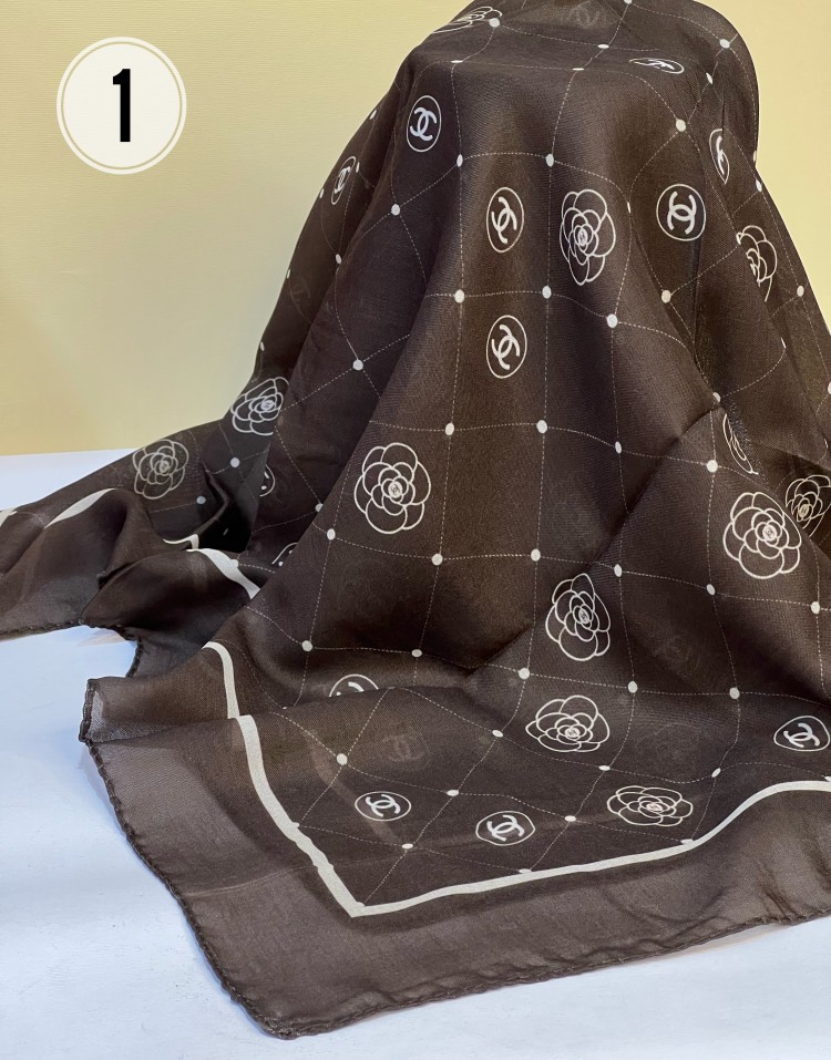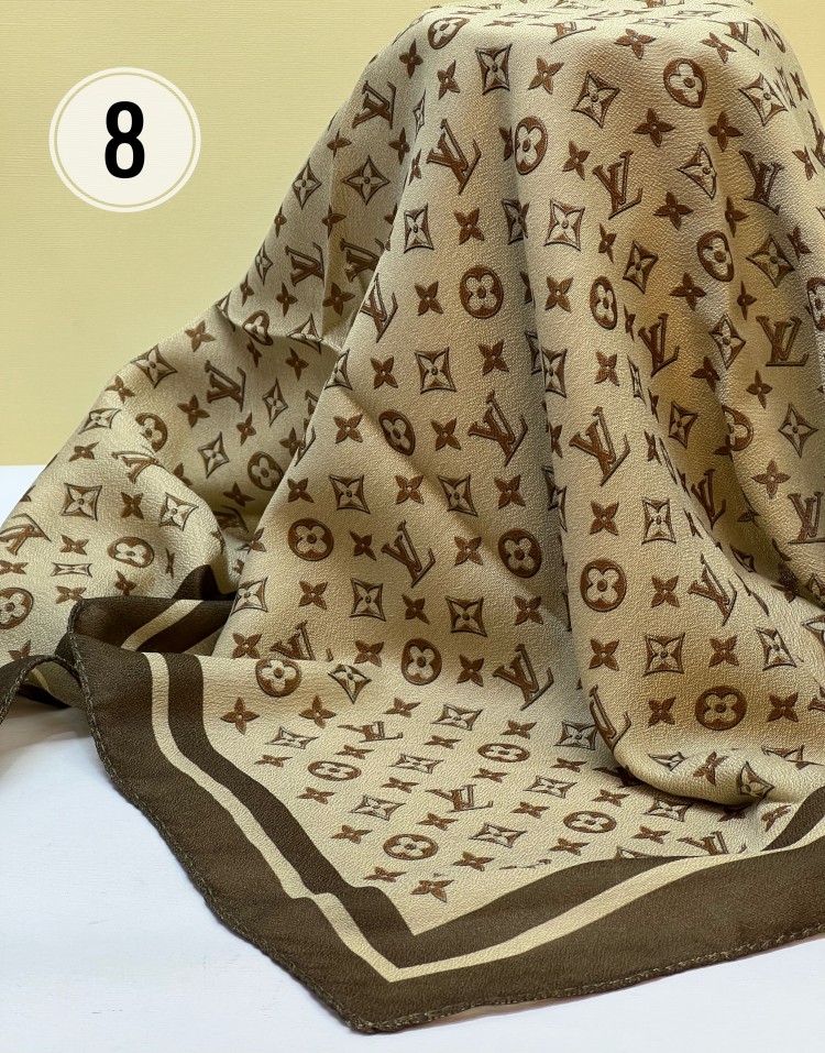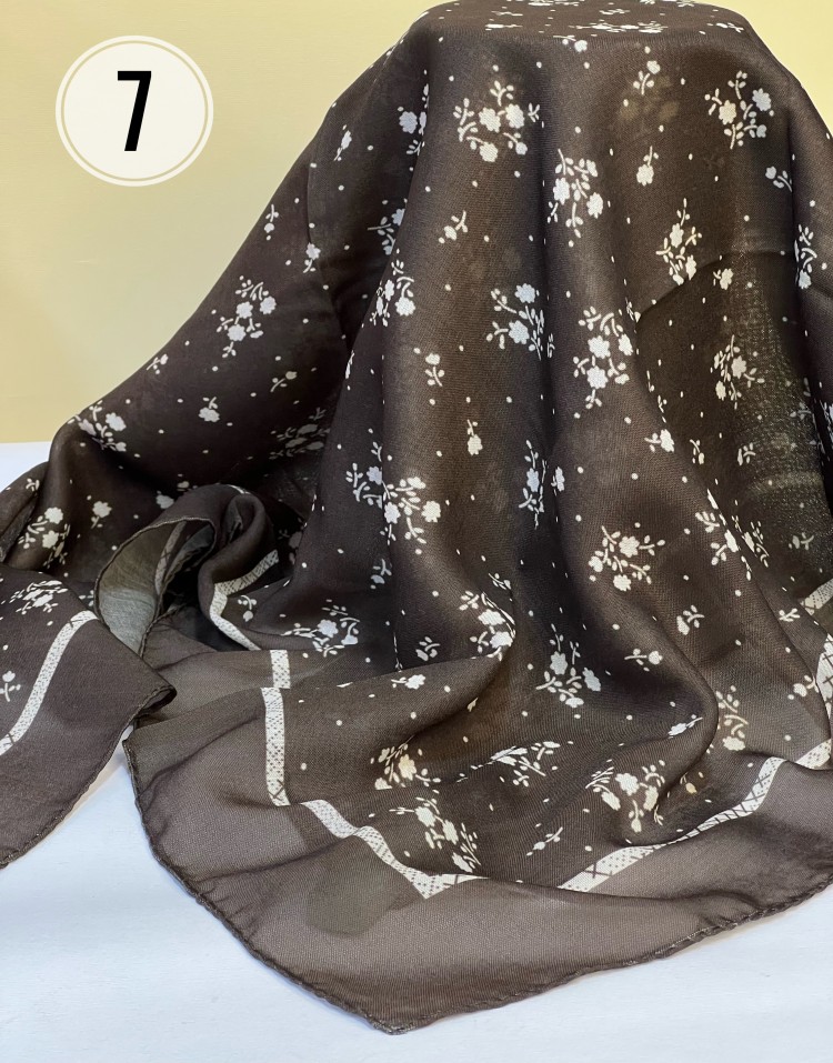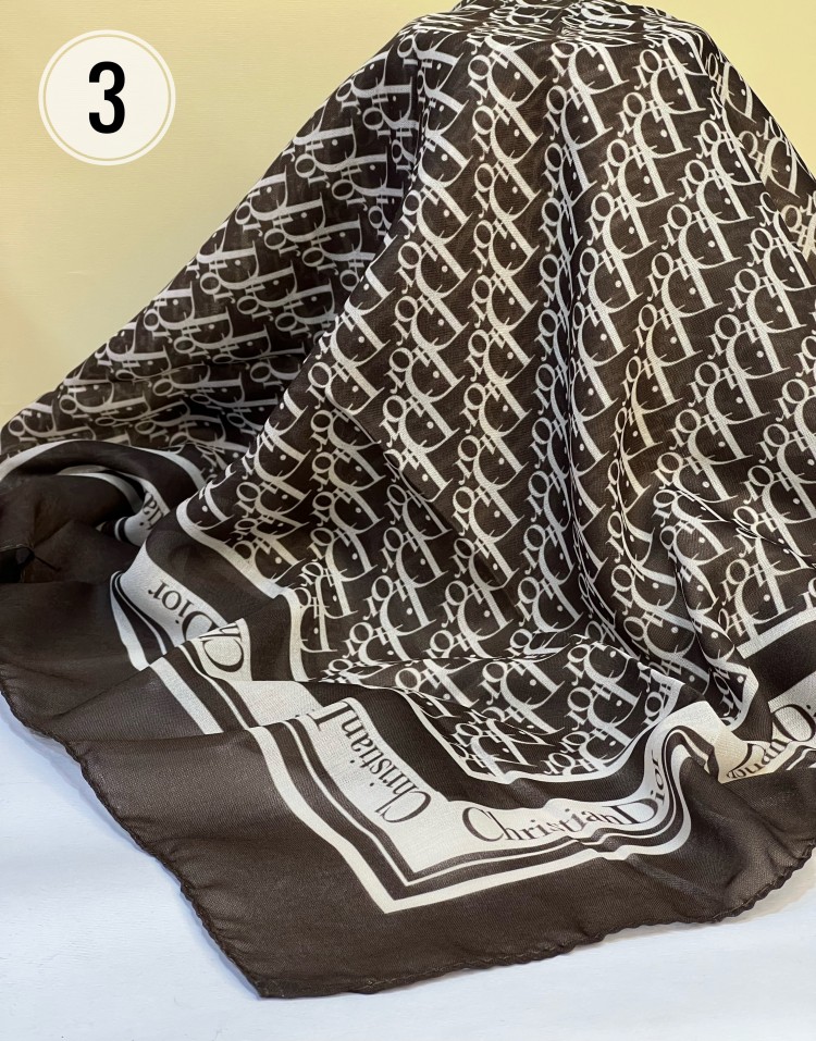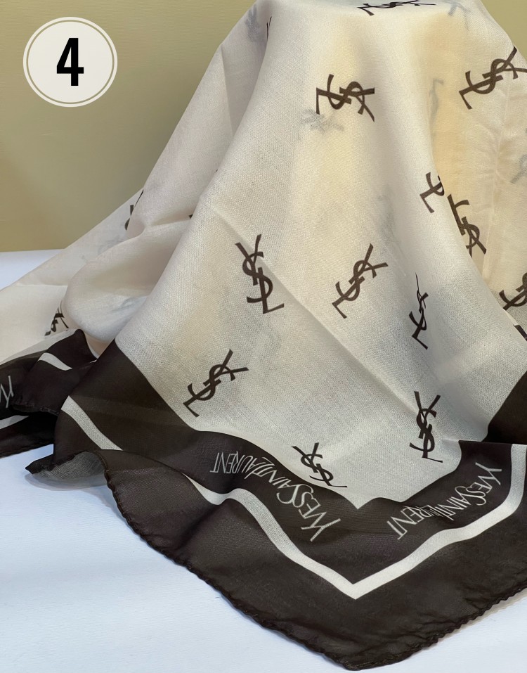 مینی اسکارف طرحدار قهوه ایی کرم کیفیت +++Aایستایی روی سر عالی