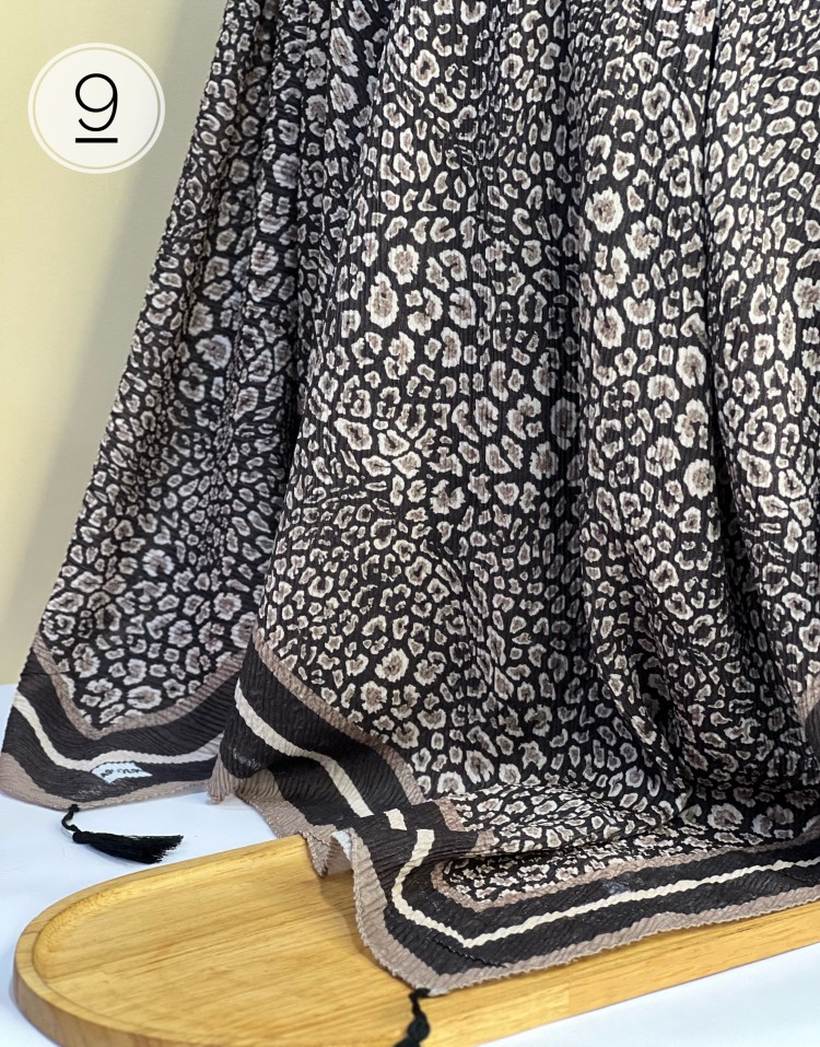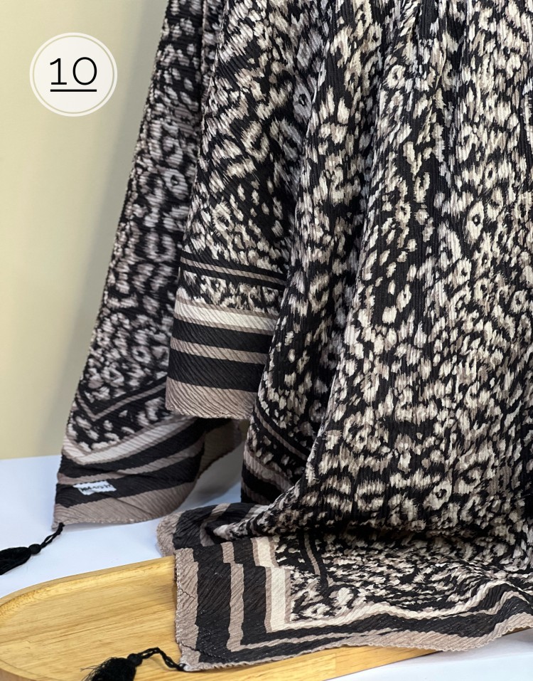 روسری پلیسه نخی پلنگی در طرح های متفاوت کیفیت+++Aایستایی روی سر عالی