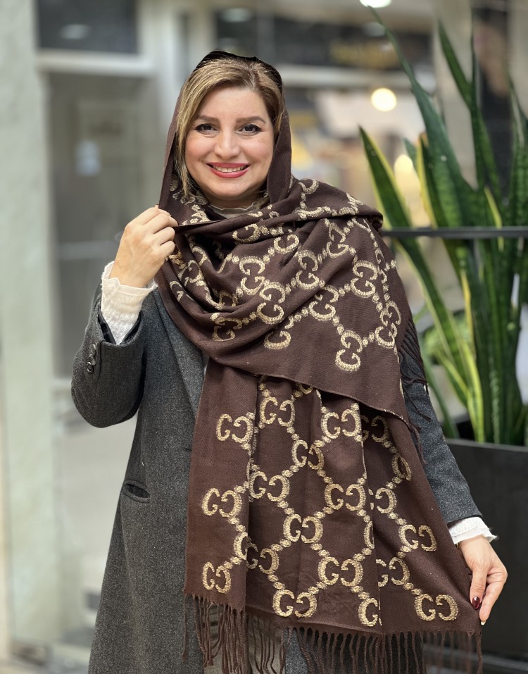 شال کشمیر مارک گوچی وارداتی ریشه بلند کیفیت درجه یک در دو رنگ مشکی کرم و قهوه ای کرم قابل استفاده به صورت شال و شالگردن