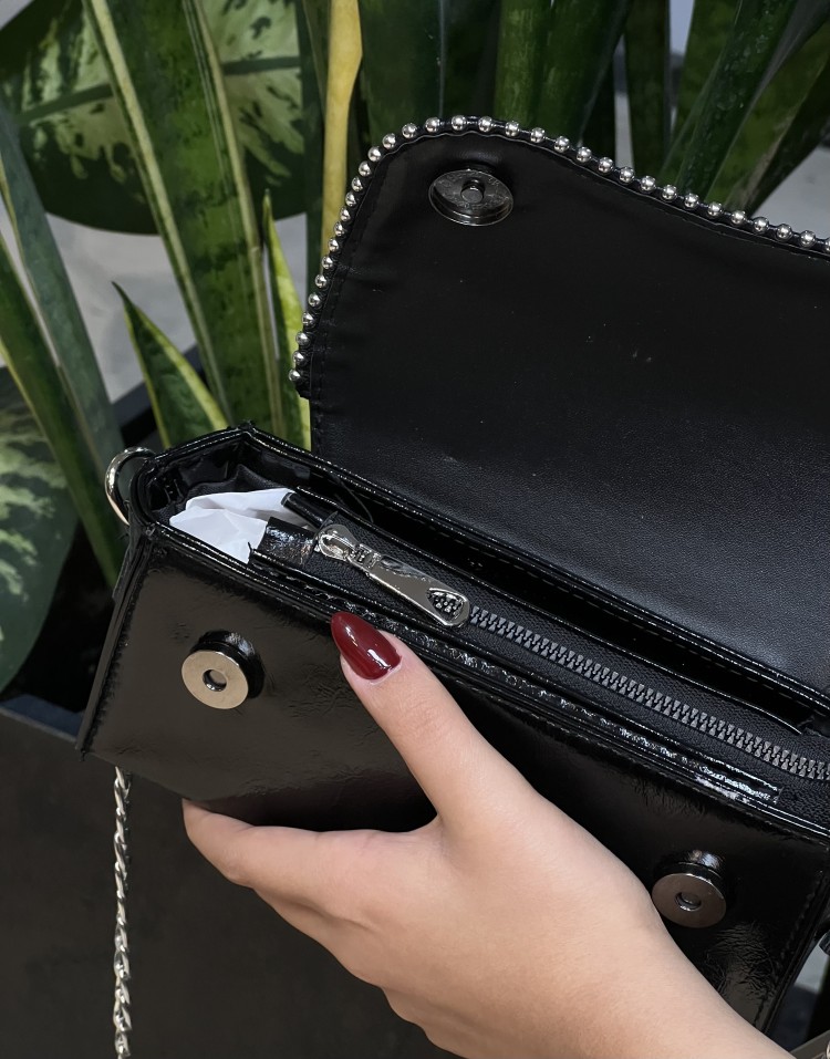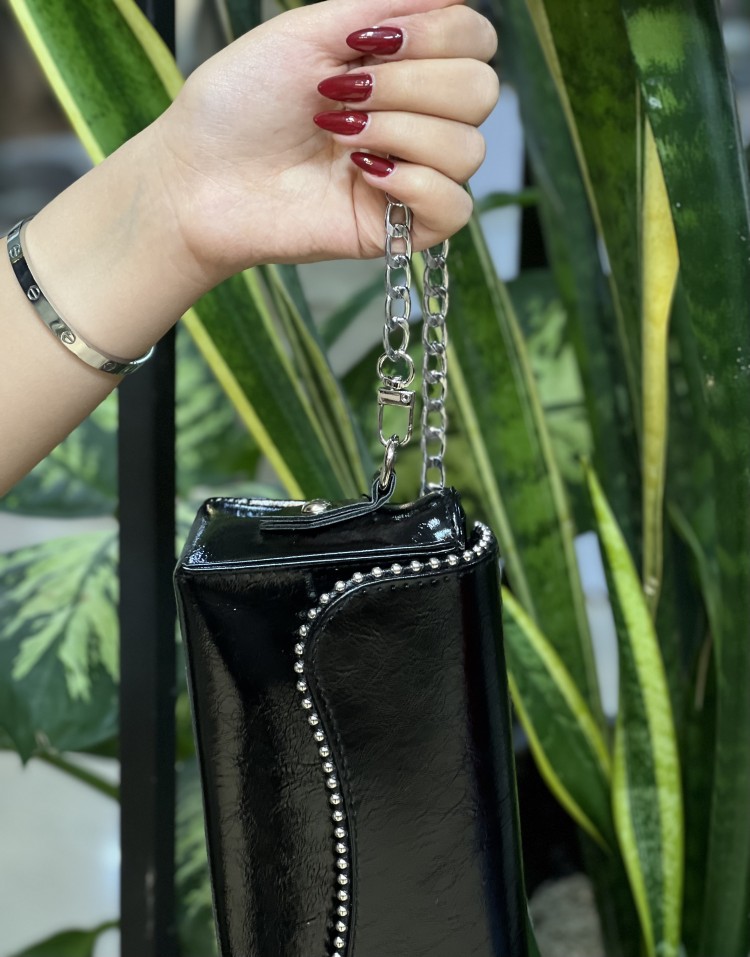 کیف رو دوشی چرمی یراق وارداتی کیفیت +++A دارای بند بلند زنجیری گوشی جا میشود.