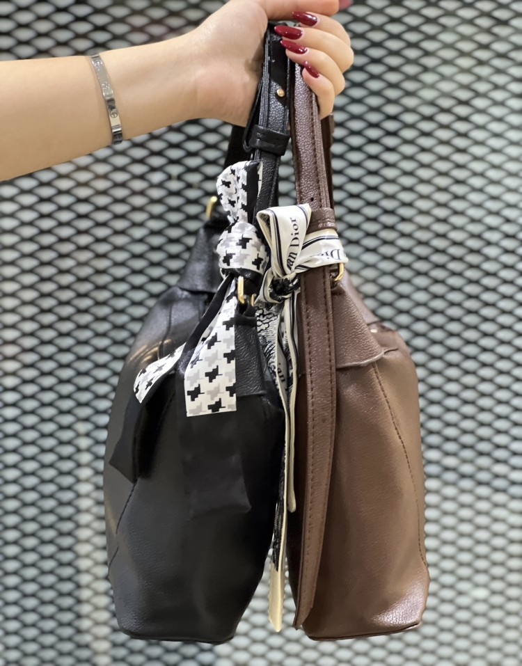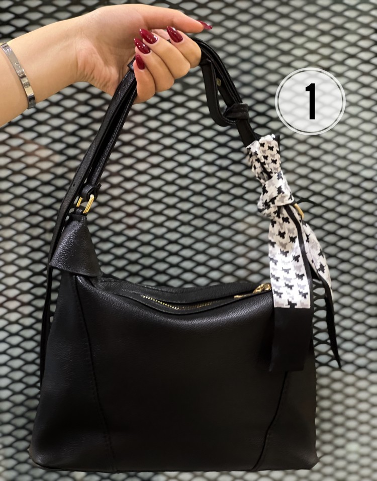 کیف رودوشی چرم یراق وارداتی کیفیت درجه یک به همراه باندانا طرح مارک بند کیف قابل تنظیم است