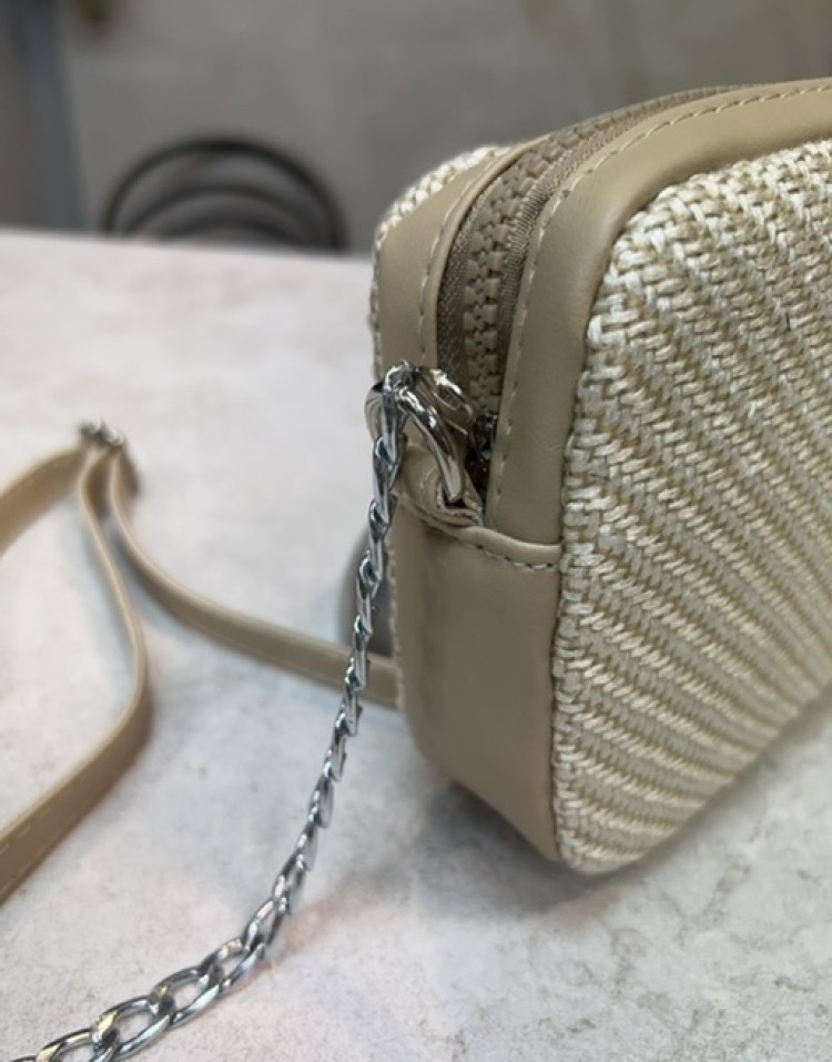 جنس کنفی. تک رنگ کاربردی.دارای بند تنظیم.بند زنجیری چرمی.